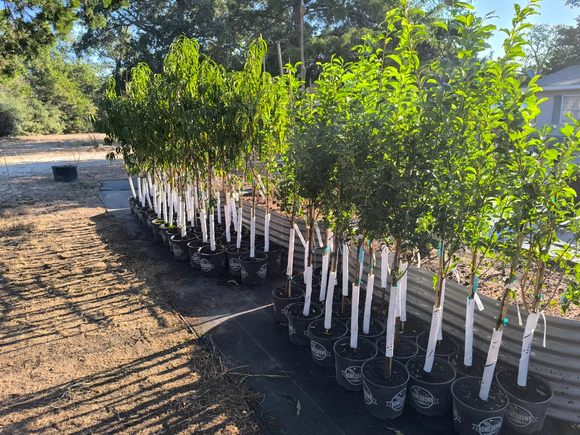 figs, pears, pomegranates, peaches, plums, Lemons, Jujubes, Bananas, and persimmons. Please check with us, as our stock is subject to change. We sell paper and vegetable plants, and the ability to harvest your own.